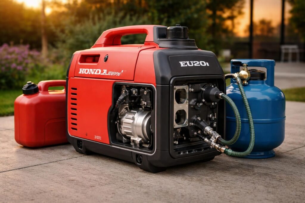 Le système de bi-carburation de l’Honda EU20i permet une flexibilité inégalée pour l’alimentation en énergie. Ce modèle peut fonctionner soit avec de l’essence, soit avec du gaz, ce qui lui confère une grande polyvalence. D’une part, l’utilisation de l’essence permet un démarrage rapide et une performance accrue, particulièrement dans des situations nécessitant une puissance immédiate. D’autre part, le gaz, souvent moins coûteux, offre une solution plus économique à long terme.